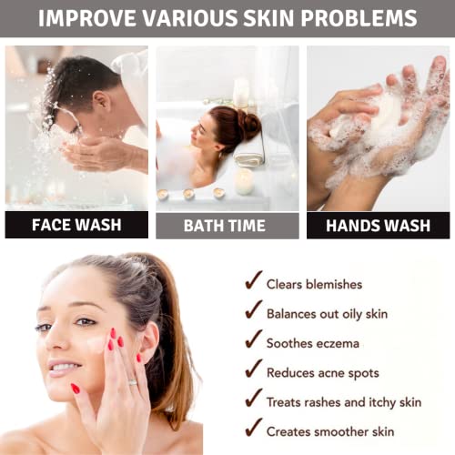 BENEFICI - Il nostro sapone migliorerà l'aspetto della pelle eliminando i batteri e riducendo la formazione di pus. Hai acne, problemi di pelle? Hai la pelle grassa o a tendenza acneica? Approfitta del nostro piccolo sapone! Soffri di eczema o prurito? Prova il nostro sapone e approfitta della sua formula! Deve essere utilizzato quotidianamente per almeno una settimana. Gli effetti saranno visibili dopo qualche utilizzo. Combattere Acne, Punti Neri e una grande serie di inestetismi della pelle.