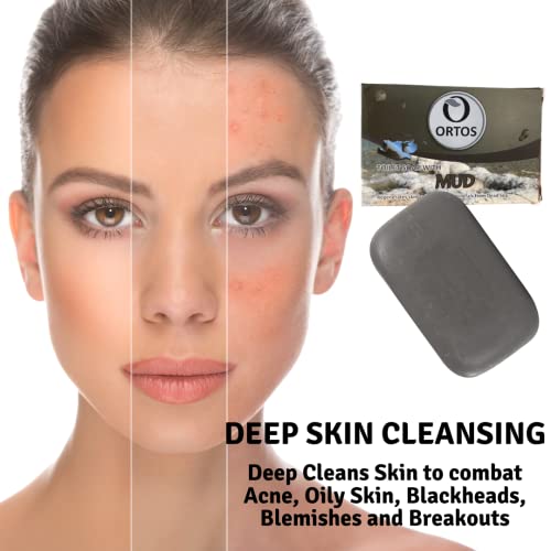ORTOS Sapone al Fango con Minerali del Mar Morto, rigenera le cellule della pelle, effetto purificante e disintossicante, efficace per acne, foruncoli o eruzioni cutanee - 2x 100g