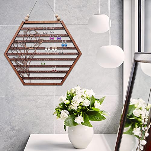 ORTUH Organizzatore Porta Orecchini Pendenti, Supporto per Orecchini in Legno, Organizzatore di Orecchini da Parete, Supporto per Orecchini a Forma Esagonale con Luna per Anelli, collane, bracciali