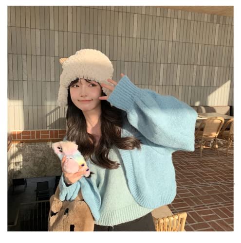 Orvila Fata Grunge Beanie Y2K Cappello di Corno di Capra Crochet Slouchy Cappello Inverno Caldo Lavorato A Maglia Alt Headwear Accessori, Beige, M