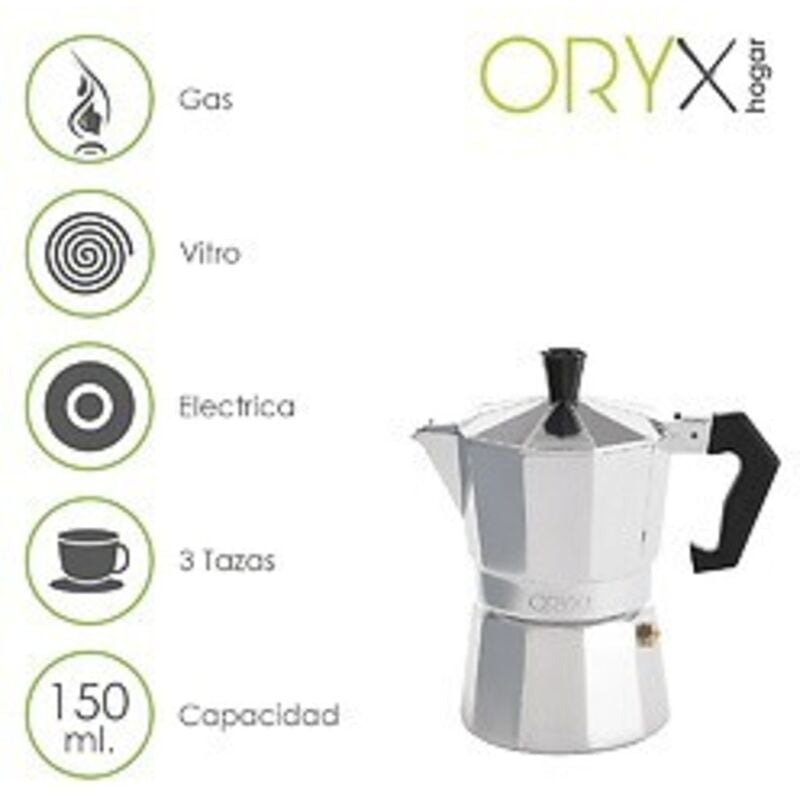 Caffettiera classica italiana in alluminio - Capacità per 3 tazze di caffè (150 ml.) - Adatta a piani cottura in vetroceramica, elettrici e a gas, tutti i tipi di fonti di calore tranne l'induzione. - Manico e pomello ergonomico in bachelite termoresistente per una presa facile e sicura, - Guarnizione in silicone più resistente e durevole, - Design interno della caldaia per una migliore pulizia senza residui. - Peso: 265 grammi. Alluminio di ALTA QUALITÀ. - Si consiglia il lavaggio a mano, in quanto potrebbe perdere la sua brillantezza in lavastoviglie. - Valido per tutti i ricambi ORYX: > 05056101 Guarnizione in gomma siliconica per caffettiera in alluminio/classica 3 Tazze (4 Unità) > 05056111 Caffettiera Classic Alluminio Filtro 3 Tazze (3 Unità) > 05056121 Caffettiera Classic Alluminio Imbuto 3 Tazze > 05056130 Manico Caffettiera Classic Alluminio 2 e 3 Tazze > 05056140 Caffettiera Classica Alluminio Manopola 2/3/6/9 e 12 tazze (3 pezzi)