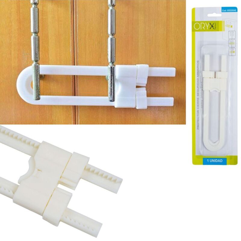 Protettore di sicurezza - Misura: 180x53 mm. - Dispositivo di sicurezza progettato per ostacolare l'apertura delle ante dell'armadio. - Installazione: > Determinare la superficie di installazione per assicurarsi che si chiuda e si apre perfettamente. > Far scorrere la protezione attraverso le maniglie o i pomoli in modo che una parte sporga. > Inserire lo scrocco nelle parti sporgenti della protezione e verificare che blocchi perfettamente le ante. - Articolo noto anche come: protezione del bambino, protezione del bambino, protezione del bambino.
