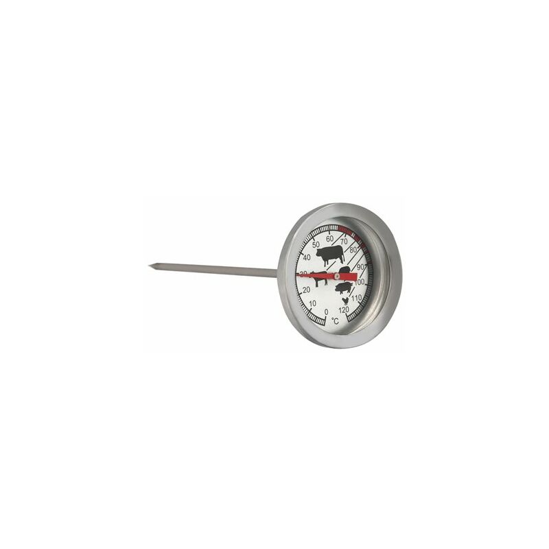 Termometro per carne da cucina analogico con sonda - Misura: Ø 55 x 140 mm. - Termometro e sonda in acciaio inossidabile. Materiale resistente e facile da pulire. - Ideale per misurare la temperatura delle carni che vengono cotte e conoscere la temperatura consigliata in base al tipo di carne che stiamo cuocendo. Prepara la tua carne preferita alla temperatura perfetta. - Ha un display con scale dove puoi vedere la temperatura e il tipo di temperatura consigliata per tipo di carne, il display ha icone di animali. - Può misurare la temperatura da 0 gradi a 120 gradi. - Sonda ad alta sensibilità, con una lunghezza di 13 cm. - Ideale per forni, cucine, carne, pesce, arrosti, barbecue, ecc. - Articolo noto come termometro per carne, termometro per arrosto, termometro da cucina, termometro da forno, termometro per barbecue.