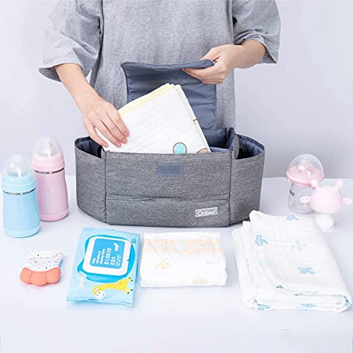 Orzbow Borsa Per Passeggino Universale,Impermeabile Organizer per Carrozzina Neonato con 2 Portabicchieri,Tracolla e Tasca con Cerniera,Universale Adatto a Tutti i Passeggini (Grigio)