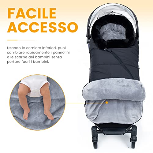 Orzbow Sacco Termico Passeggino Universale,Sacco Ovetto Invernale con Cerniera,Sacchi Nanna per Bambino con Collo in Pelliccia Spessa Rimovibile,Coprigambe Universale Culla (Nero)