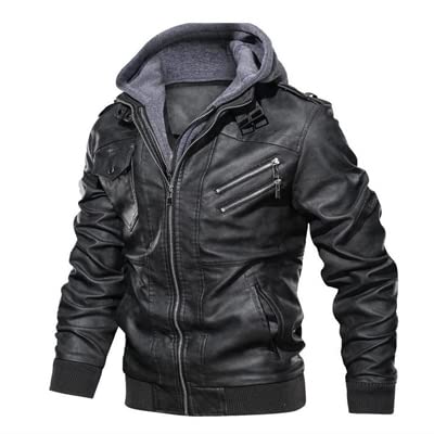 【Cappuccio con cerniera】 La giacca in pelle con cappuccio rimovibile può essere convertita in 2 stili, giacca con cappuccio resistente al freddo e giacca in pelle vintage con colletto rialzato, offre una protezione extra contro il freddo.