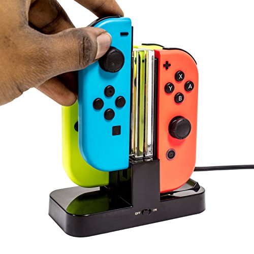 TUTTO IN UNO - SUPPORTO & CARICATORE: La stazione di ricarica Orzly è perfetta per riporre i controller e i caricatori contemporaneamente. Può caricare fino a 4 Joy-Cons singolarmente o contemporaneamente (o può caricare 1 Controller Pro con 2 Joy Cons).