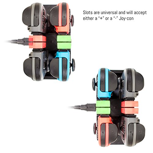 CARICAMENTO INTELLIGENTE: I sensori intelligenti rilevano automaticamente quando ogni controller Joy-Cons e/o Controller sono completamente caricati. Si interrompe automaticamente la ricarica per evitare sovraccarichi, mantenendo la durata delle batterie.