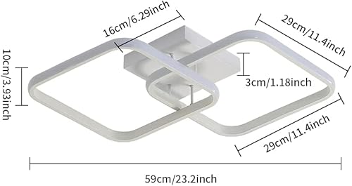 Osairous Lampada da soffitto quadrata moderna a LED, Plafoniera in acrilico 42W per Cucina Sala da pranzo Salotto Studio Ufficio 6500K, Diametro 59cm (Bianco)