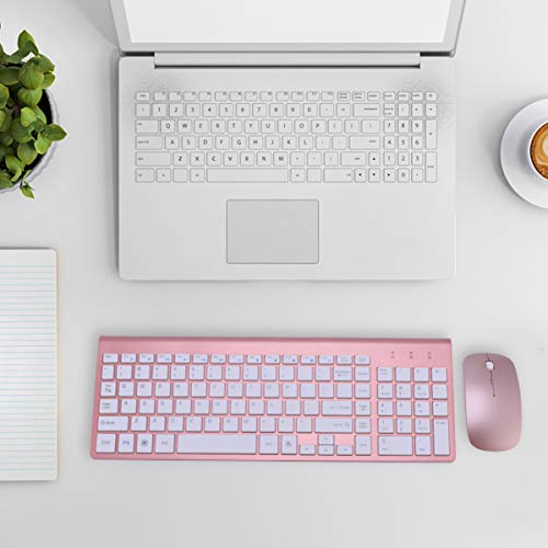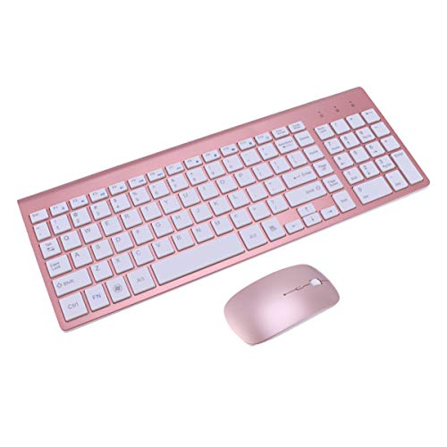 OSALADI Tastiera Senza Fili Mouse Combo Tastiera Senza Fili USB Mouse Senza Batteria per Computer Portatile Pc Tablet Desktop Notebook (Oro Rosa)