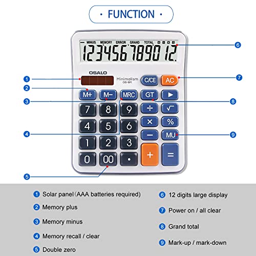 OSALO Calcolatrice da tavolo per ufficio a 12 cifre grandi display LCD (OS-6M)