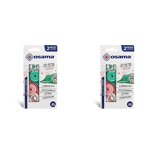 CORRETTORE A NASTRO: Utile elemento di cancelleria, il correttore a nastro Osama ha una lunghezza di 20 metri, ideale per la copertura degli errori indesiderati grazie all'ottima coprenza. Il pack da due pezzi consente di rifornirsi di 40 metri di prodotto