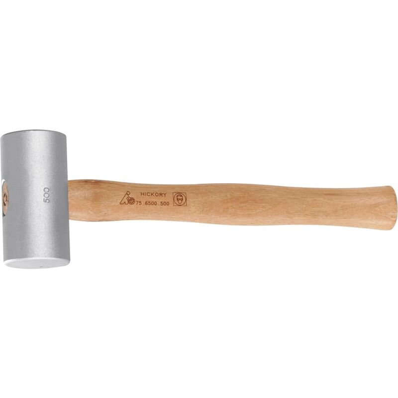 Corpo cilindrico in alluminio bonificato. Con manico in legno in noce americano. Uso: Per la deformazione di lamiere, per lavori di spianatura e montaggio. Dati tecnici Tipo di prodotto Martello Lunghezza manico, mm 380 ⌀ Testa, mm 70 Lunghezza della testina, mm 140 Peso, g 1.500