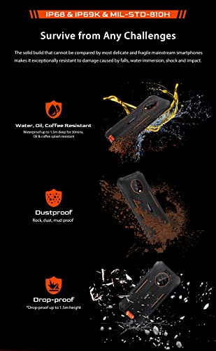 ★【IP68 & IP69K & MIL-STD-810H,Sopravvivi a qualsiasi sfida:】 La solida costruzione, che non può essere paragonata agli smartphone mainstream più delicati e fragili, lo rende eccezionalmente resistente ai danni causati da cadute, immersione in acqua, urti e impatti.(Impermeabile fino a 1,5 m di profondità per 30 minuti, a prova di caduta fino a 1,5 m di altezza)