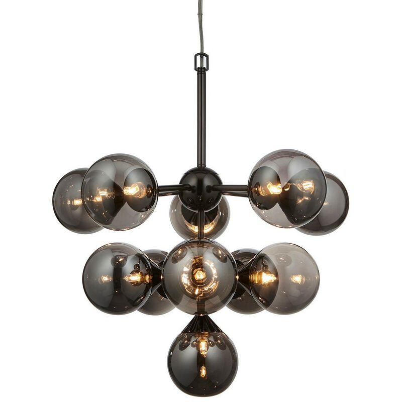 Endon Oscar Lampada a sospensione da soffitto con paralume in vetro a 11 luci, colore nero cromato | Finitura: piastra cromata nera e vetro a specchio fumé | Materiale: acciaio e vetro | Grado di protezione IP: IP20 | Altezza minima: 72 cm | Altezza massima: 202 cm | Diametro: 55,8 cm | Tipo di lampada: G9 | Numero di lampade: 11 | Lampadina inclusa: no | Dimmerabile: sì | Potenza (massima): 11 x 3 W