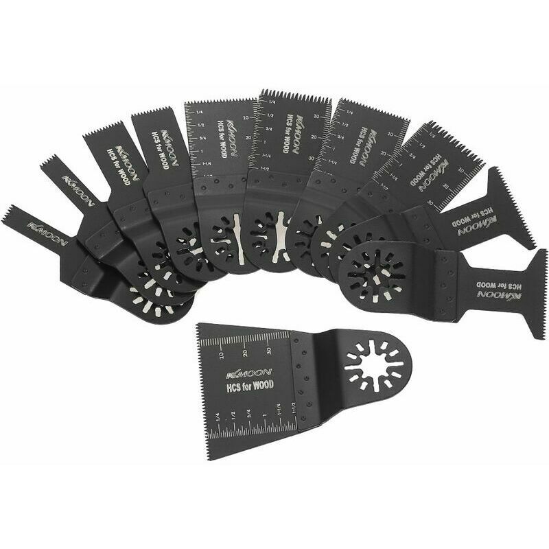Questo kit di lame da taglio professionale e compatibile è progettato per utensili elettrici multifunzione con 11 accessori multiutensile oscillanti. Le seghe oscillanti in acciaio ad alto tenore di carbonio vengono utilizzate per il taglio di legno, plastica e cartongesso. Le seghe oscillanti bimetalliche sono utilizzate per il taglio di legno, plastica, cartongesso, piccoli chiodi, ferro sottile e leghe leggere di alluminio. Caratteristiche: Lama multiutensile di alta qualità con nuovo foro interno della lama per sega (foro per fiori multiuso). Ideale per tagliare moquette, pelle, linoleum, cartone, legno, laminati, plastica e cartongesso. Le lame di precisione tagliano materiali laminati senza scheggiature e il design a denti larghi resiste al carico e migliora la velocità di taglio con i denti incisivi. Fornisce una lunga durata, una lunga durata e un'elevata velocità di taglio. Ottimo accessorio per l'industria edile, l'estrazione mineraria, la costruzione di autostrade e la