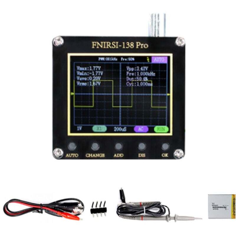 Questo oscilloscopio portatile FNIRSI 138pro di piccole dimensioni, le dimensioni di questo oscilloscopio sono solo 65 * 60 * 18 mm, rispetto agli oscilloscopi tradizionali, è più adatto per il trasporto. Se stai cercando un nuovo oscilloscopio, vieni a provare questo prodotto, non ti deluderà misura veloce della forma d'onda. Premi a lungo il pulsante AUTO per una rapida calibrazione di base. 3 modalità di trigger: La modalità a trigger singolo per testare segnali non periodici imprevisti, le modalità di trigger automatiche per il test del periodo del segnale analogico e il trigger normale per il test del segnale logico digitale. Uscita a onda quadra PWM: questo oscilloscopio con funzione di uscita a onda quadra PWM, intervalli di frequenza di 0-80kHz e un ciclo di lavoro di 0-100%. Ampie applicazioni: questo oscilloscopio è adatto per riparazioni auto, fai-da-te, manutenzione di elettrodomestici, insegnamento sperimentale, ecc. Specifiche: Materiale: PCB Tipo:(opzionale) Tipo1