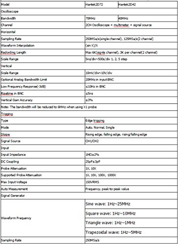 Oscilloscopio Portatile, Oscilloscopio con Multimetro Oscilloscopio Hantek2D72/2D42 70MHz/40MHz 2CH + Multimetro + 25M Generatore di Segnale AC100-240V(EU 1)