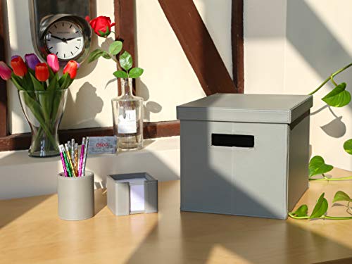 Stylish and sturdy large storage box - Elegant grey faux leather exterior and grey faux suede interior