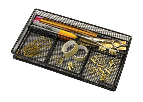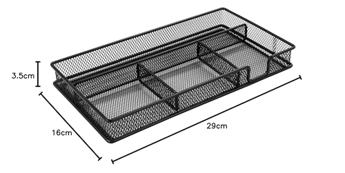 The mesh tray can fit in a draw or on top of your desk and is easily wiped clean.