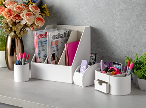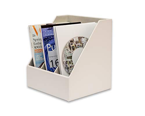 Design classico e solidamente costruito, questo elegante portariviste bianco in finta pelle è perfetto per riporre riviste o documenti