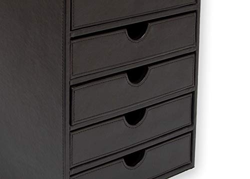 OSCO Portadocumenti multi-cassetto rifinito in ecopelle marrone cioccolato - Cinque cassetti formato A4+ - Alta qualità costruttiva - Facile da pulire e resistente