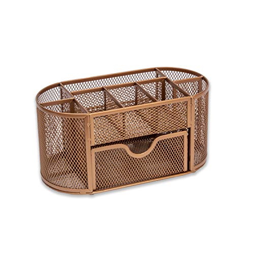 OSCO Organizer da scrivania in rete rosa con 8 scomparti separati e un piccolo cassetto. Perfetto per riporre penne, righelli, forbici e smartphone.