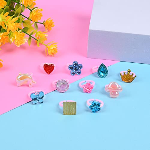 Materiale di alta qualità: realizzato in resina/acrilico e metallo di alta qualità, privo di nichel, delicato sulla pelle, sicuro, facile da mantenere, adatto per accessori per vestire la principessa, finto kit di anelli per gioielli. Set di gioielli per giocattoli per bambini per giocattoli per ragazze per 3 4 5 6 7 8 anni.