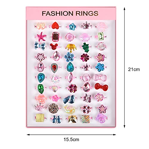 OSDUE Anelli per Bambina, 50 pcs Anelli Gioiello per Bambina, Anelli Bambina Regolabili, Senza Duplicazioni, Anelli Gioielli Regolabili Rhinestone, per Bambini Favori di Festa di Compleanno
