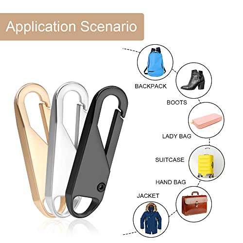 【Facile Da Installare】Tirazip rimovibile, Semplicemente spingere da un lato e scivolarla attraverso l'apertura e lasciarlo scattare indietro. l'estrattore di ricambio con cerniera che è possibile installare senza attrezzi o abilità di cucito, che fissa facilmente i tuoi vestiti, ti offre grande comodità anche quando sei in viaggio.