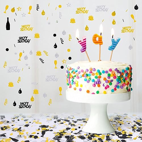 OSDUE Coriandoli Compleanno In Nero Oro 30g, Compleanno Coriandoli, Argento Coriandoli Paillettes, Happy Birthday Coriandoli, per Decorazione Della Tavola Di Compleanno Festa Anniversario