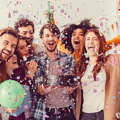 【Decorazione perfetta】 Riceverai 1200 pezzi di coriandoli di compleanno 8 diverse forme di coriandoli di compleanno da tavola, 30 g, ogni pezzo di coriandoli ha una dimensione di circa 1 * 3 cm, sufficiente per una piccola decorazione per feste, lascia che la tavola di compleanno sia energica.