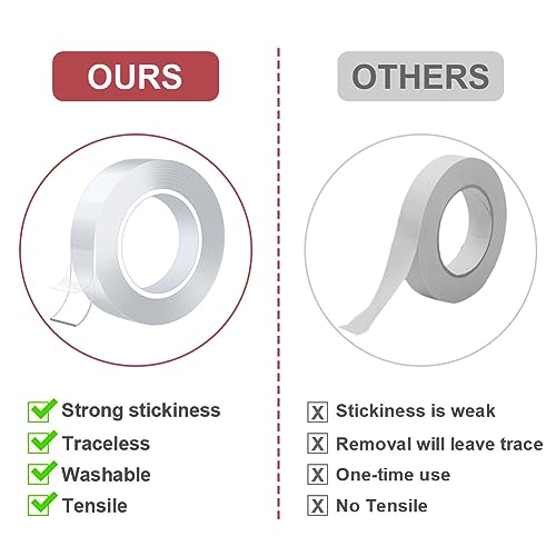 OSDUE Nastro Biadesivo Extra Forte Trasparente, 3M Nano Tape Riutilizzabile Non Lascia Tracce, Rimovibile Multifunzione Nano Potent Tape, per Lncollare Foto e Poster,Fissare Tappeti,Articoli in Pasta