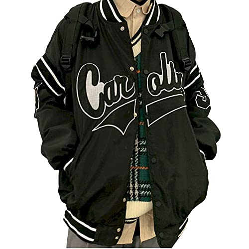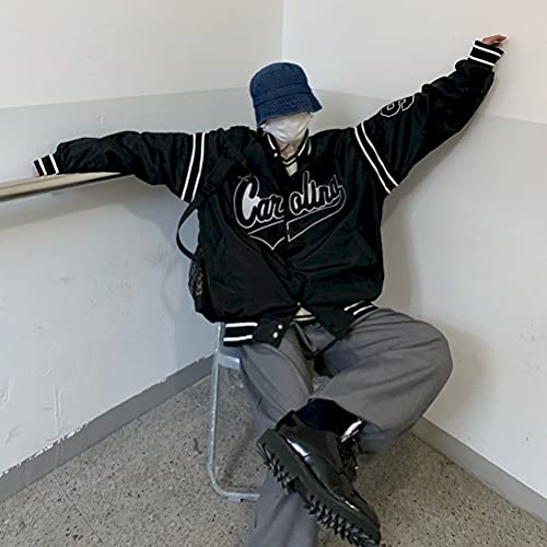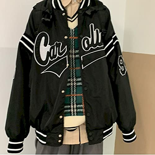 Osheoiso Bomber Jacket Giacca Donna Giacca Sportiva Jackets Vintage Streetwear con Tasca Outwear Giacca College Sweat Jacket A Nero XXL