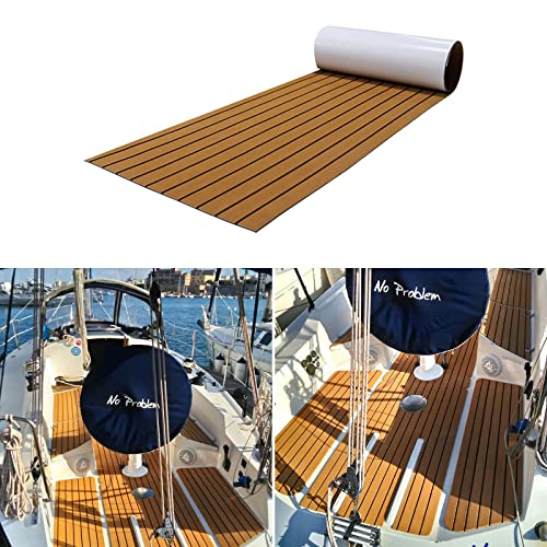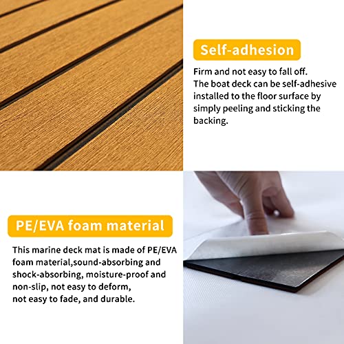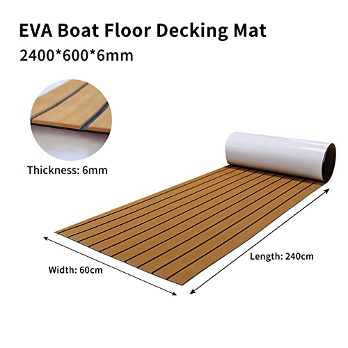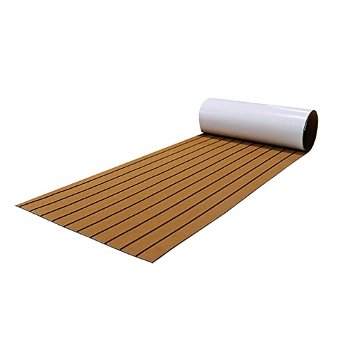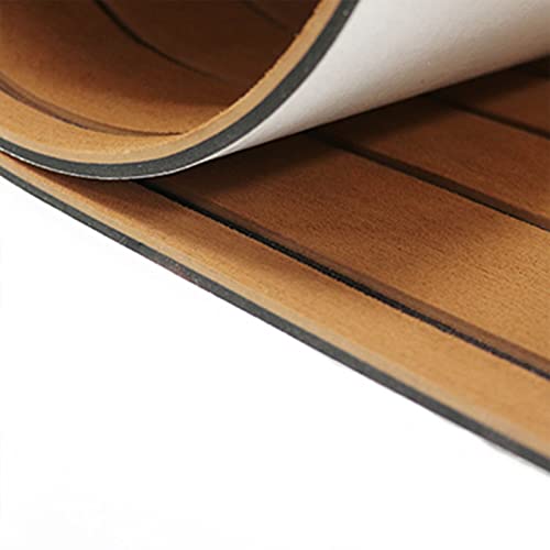 OSLEN Eva Schiuma Teak Sintetico Marino Tappeto Antiscivolo -Pavimenti Teak Adesivo per Barche e Kayak, RV, Pavimenti da Giardino,Decorazioni per Yacht (240x60cm-Marrone Chiaro su Nero)
