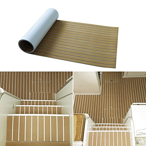 OSLEN Eva Teak Sintetico Marino Pavimenti,Schiuma Tappetino per Barca 240 * 90 * 0.6cm Tappeto Antiscivolo con Retro Adesivo per Barche e Kayak, Piscine,Decorazioni per Yacht (Teak Chiaro su Bianco)