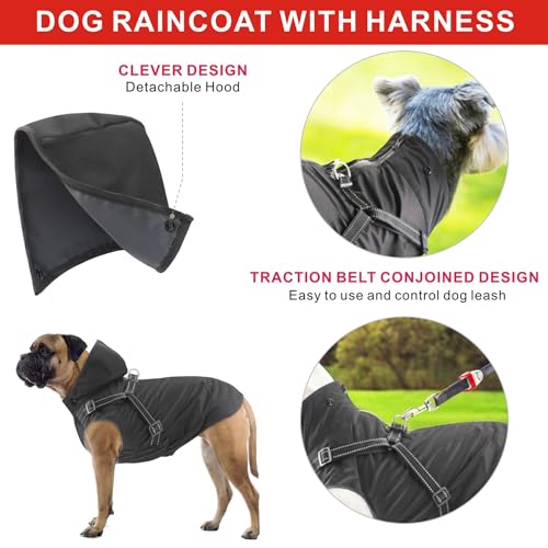 Oslueidy Impermeabile per Cani con Pettorina, Cappotto Giacca Impermeabile per cani con cappuccio, Poncho antipioggia Abbigliamento antipioggia per cani di piccola e media taglia (M, Nero)