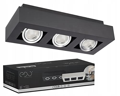 EDO OSMIN 3 Nero lucido quadrato triplo faretto da soffitto IP20 nero opaco faretto da soffitto moderno EDO777426