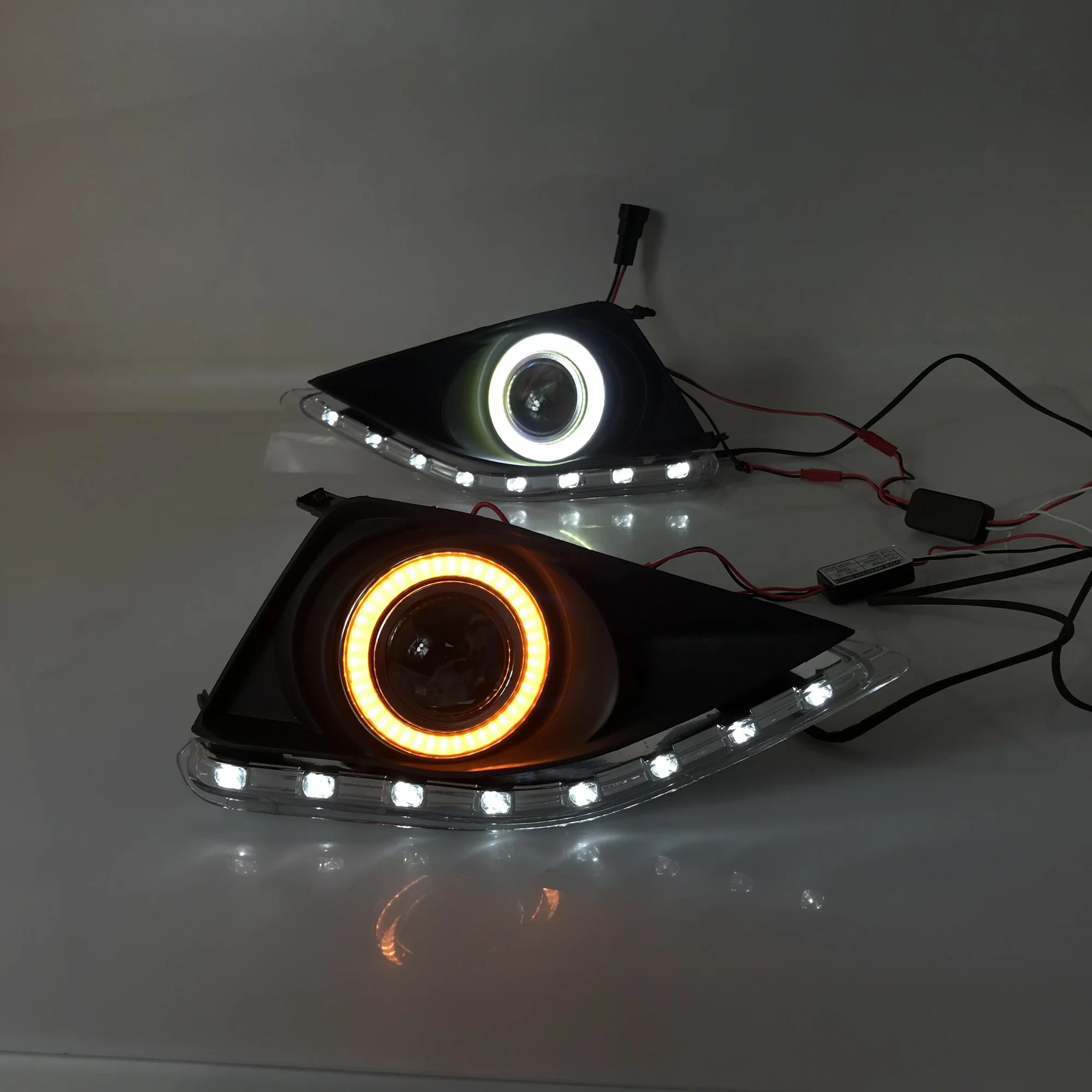 Osmrk fog lamp driving light assembly for toyota corolla 2006-10 cob angel eye led turn signal daytime running lights