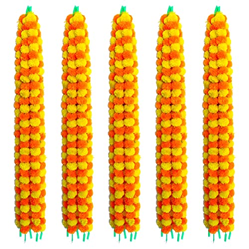 OSNICA Ghirlanda di fiori artificiali lunghi fatti a mano, 5 pezzi, per decorazione, Toran Genda Phool, per matrimoni/festival, da appendere alla porta per la decorazione, 1,5 m |