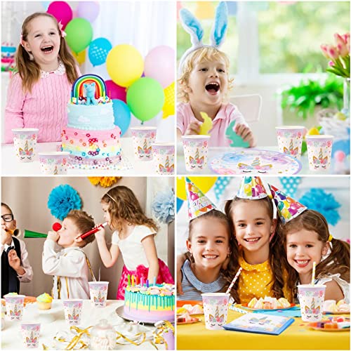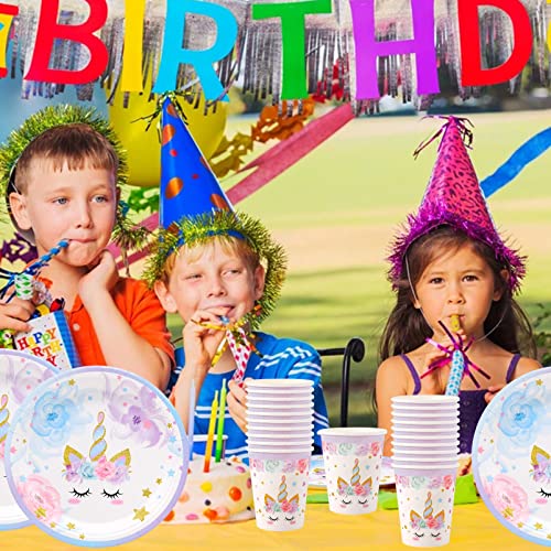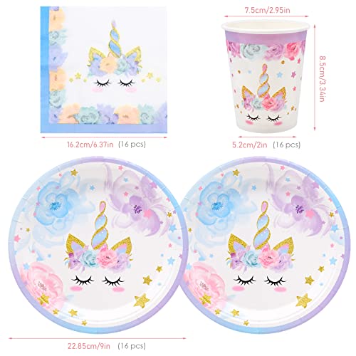 16 Ospiti Stoviglie Unicorn Piatti di Carta Tovaglioli e Bicchieri, Unicorno a Tema Forniture per Feste di Compleanno per Ragazze Bambini Baby Shower