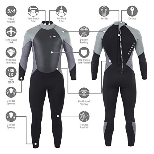Osprey Zero 5mm Inverno Lunghezza Intera, Muta Uomo, Grigio, XL