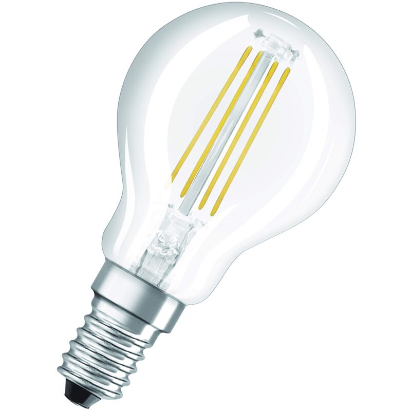 Descrizione Lampada LED a filamento Base Classic P Osram con forma classica a sfera, finitura chiara e attacco E14 ha una potenza equivalente con 40 W e luce calda 2700 K. Confezione da due pezzi. Contenuto della confezione Lampada LED a filamento