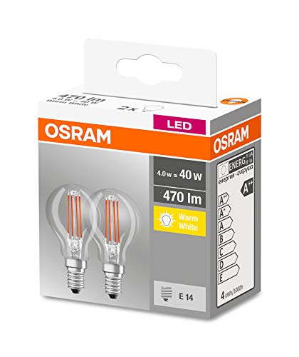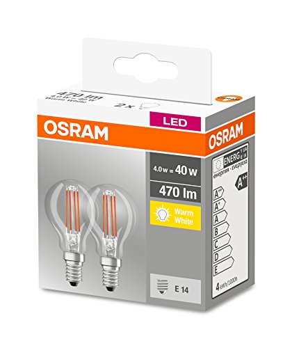 Osram Base Classic Lampada LED a Filamento, E14, 4.3 watts, Bianco, 2 Unità