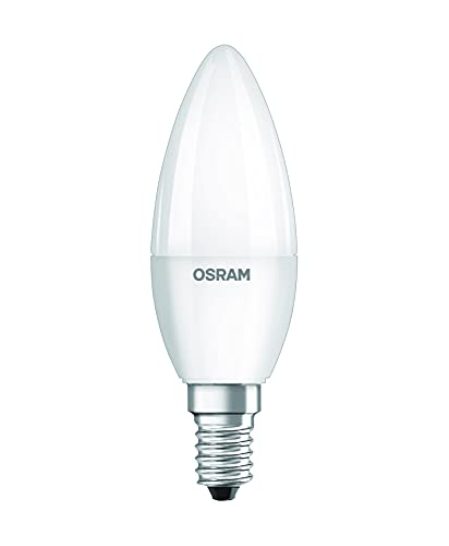 OSRAM LED BASE Classic B40, lampade LED a filamento smerigliato in vetro per base E14, forma di candela, bianco caldo (2700K), 470 lumen, sostituisce le lampadine tradizionali 40W, scatola da 5