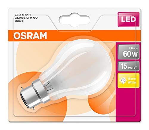 OSRAM Lampada LED | Attacco: B22d | Warm White | 2700 K | 7 W | sostituzione per 60 W Incandescent bulb | opaco | LED Retrofit CLASSIC a [Classe di efficienza energetica A++]