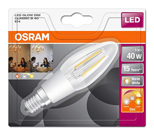 OSRAM Lampada LED | Attacco: E14 | Tunable Warm White | 2200...2700 K | 4,50 W | sostituzione per 40 W Incandescent bulb | chiaro | LED SUPERSTAR CLASSIC B GLOWdim [Classe di efficienza energetica A++]