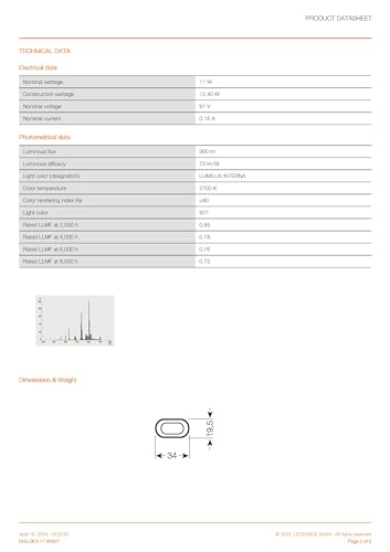 Caratteristiche del prodotto: media: 10.000 h Indice di resa cromatica Ra per lampade con luce bianca: 80