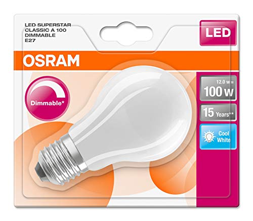 OSRAM Goccia Lampadina LED, 12 W Equivalenti 100 W, Attacco E27, Luce Naturale 4000K, Confezione da 1 Pezzo