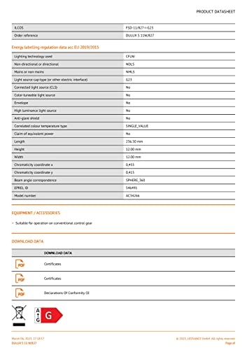 Osram - Lampada fluorescente compatta Dulux S - G23, 11 W, 827 Interna